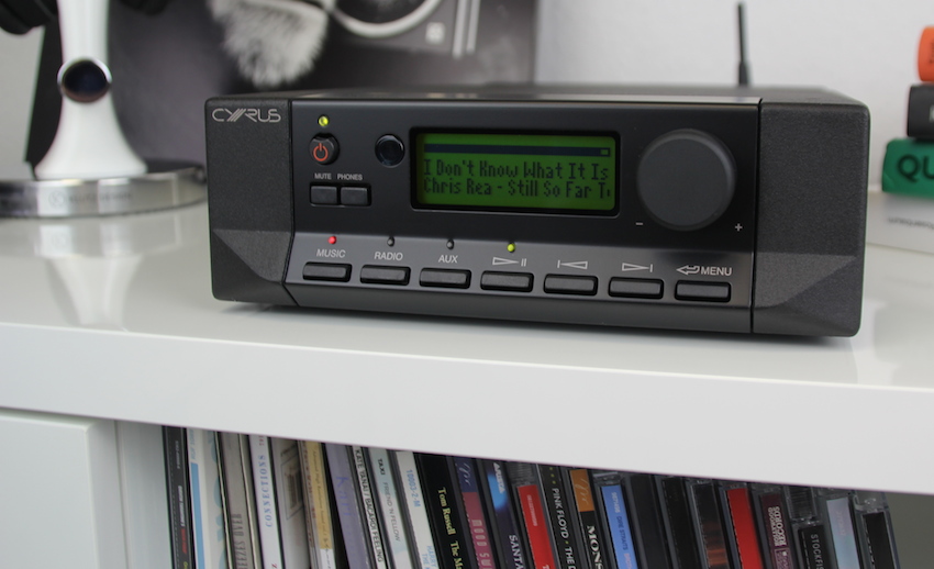Um Musikdateien von unserem im Netzwerk befindlichen NAS-Laufwerk abzuspielen, genügt dann ein Druck auf die „Music-Taste“ am Streamline2. Ist dies geschehen, werden bereits alle verfügbaren Dateien im Display angezeigt. Bei dieser Gelegenheit findet sich dann auch der einzige kleine Punkt zur Kritik, denn aufgrund seiner kompakten Abmessungen zeigt das kleine LED-Fenster immer nur zwei Auswahlmöglichkeiten an. Natürlich lässt sich mit jeder Bewegung des griffigen Drehreglers sauber und verzögerungsfrei durchs Menü scrollen, doch hier wäre für die Zukunft eine übersichtlichere Lösung wünschenswert. Ist die gewünschte Playlist bzw. das gesuchte Album dann gefunden, lässt sich die Wiedergabe über kurzes Drücken des eben erwähnten Drehknopfes auch starten, welcher im Wiedergabemodus auch als Lautstärkeregler fungiert. Übrigens: Ist die NAS-Platte via Ethernetkabel mit dem Cyrus verbunden, werden alle Inhalte ebenfalls sofort angezeigt – auch wenn der Streamline 2 nicht mit dem heimischen Netzwerk verbunden ist.