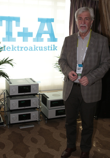 Siegfried Amft zeigt in Vegas mit dem P 3000 HV ein neues Produkt der äußerst erfolgreichen HV-Serie von T+A. Dabei handelt es sich um einen so genannten DSD-Player, also eine Kombination aus SACD-Player und DSD-fähigem DAC. Die extrem aufwändige Konstruktion und die Reduzierung auf das Wesentliche sollen dazu beitragen, dass der P 3000 HV aus allen hochaufgelösten digitalen Formaten das Beste heraus holt.