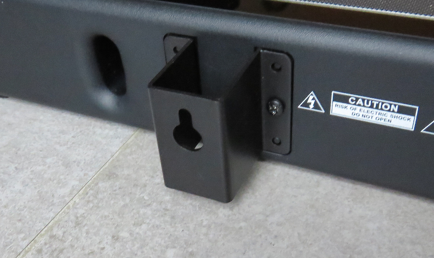 1 Bedienungsanleitung (deutsch/englisch)Ausgepackt macht die Soundbar gleich auf den ersten Blick einen guten Eindruck. Mit gerade einmal 1,1 Kilo ist sie nicht besonders schwer, sondern eher ein Fliegengewicht, was mit unter anderem an ihrem Minimalmaß und den eingebauten Digitalverstärker liegt. Mit ihren Abmessungen von 90,0 x 5,7 x 7,0 (BxHxT) Zentimetern findet sie sogar unter kleineren Fernsehmodelle einen festen Platz, ohne ins Bild zu ragen. Die gesamte Front, ein großer Bereich der Oberseite und ein kleiner Teil der Unterseite sind von einem Metallgitter eingefasst, welches man in ähnlicher Form von schlanken Säulen-Lautsprechern kennt. Im oberen Bereich auf der Oberseite findet sich eine verspiegelte Leiste, in die sämtliche Touch-Buttons integriert sind. Beide Seitenteile sind von chromfarbenen Abdeckungen bedeckt. Rechtsseitig eingelassen befindet sich der USB-Port. Seine Platzierung ist vielleicht eher ungewöhnlich, dafür aber clever, da leicht zugänglich. Sehr praktisch! Unter- und Rückseite bestehen aus schwarzem Kunststoff, was die Auna-Bar noch etwas unauffälliger werden lässt, als sie es ohnehin ist. Mittig in der Rückseite sind alle weiteren Anschlussmöglichkeiten verbaut – u.a. auch die festinstallierte Wurfantenne des Radiotuners. Links und rechts neben den Anschlüssen befinden sich zudem kleine Bassreflexöffnungen, die den unteren Wiedergabebereich der Soundbar nochmals erweitern sollen. Auna spricht hier übrigens von einem Bassabstieg bis runter auf 40 Hertz. Wir sind schon gespannt, ob Auna dieses Ziel tatsächlich realisieren kann. Aber zunächst mal weiter mit der Ausstattung: Unterseitig finden sich zwei große Gummifüße, die der Soundbar einen festen Stand bieten. Zugleich ist die Areal Bar 350 aber auch für die Wandmontage vorbereitet. Dank der mitgelieferten Winkel, des Schrauben/Dübel-Sets und einer aussagekräftigen Montageanleitung wird die Anbringung zum Kinderspiel.