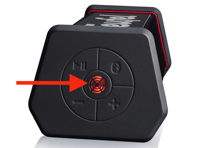 Geht es dann in die Wiedergabe, entfaltet sich der kräftige und klare Klang des Rockster XS erstaunlich schnell. Für seine Größe zeichnet er sich bereits im Normal-Modus durch satte Bässe aus. Im Gegensatz zu vielen mobilen Mitbewerbern, die in unteren Frequenzbereichen schnell mal schlapp machen, dreht der Rockster allein hier schon kräftig auf. Einfach beeindruckend, wie es Teufel geschafft hat so einen druckvollen Bass aus einem so kleinen Gehäuse zu kitzeln. Im Mittenbereich bleibt unser Testgast dagegen etwas zurückhaltender, aber wir finden für den vordergründigen Einsatz im Indoor-Bereich ist das genau richtig so. Der kleine Rockster XS kann – in Relation gesehen – klanglich durchaus mit seinem großen Bruder mithalten. Seine Lautstärke erreicht er natürlich aufgrund seiner kompakten Maße nicht, aber in den Bässen bringt der kleine Bluetooth-Bolide Cocktailgläser auf der Theke schnell zum Wackeln. Kurz gesagt: Wer es rockig und basslastig mag, kommt mit dem kleinen Berliner voll und ganz auf seine Kosten. Angefangen bei den Basssoli der Red Hot Chili Peppers, über die Wiedergabe aktueller Popsongs wie „Focus“ von Ariana Grande, bis zu den fantastischen Schlagzeugeinsätzen von Phil Collins in „In The Air Tonight“ ist es für jeden Musikliebhaber ein Genuss hier zuzuhören. Im aktivierten „Outdoor“ Modus werden Mitten und Höhen dann etwas angehoben und erzielen in Verbindung mit dem kräftigen Bass eine höhere Gesamtlautstärke. Sehr gut, denn dadurch liefert der Rockster XS einen insgesamt sehr klaren und satten Klang und hält somit die Stimmung auf jeder Party hoch. In Verbindung mit den kräftigen Bässen kommt dann schnell Schwung in jede müde Hüfte! Der aktive Outdoor-Modus wird übrigens über die leuchtende Taste in der Mitte des Tastenfeldes angezeigt.