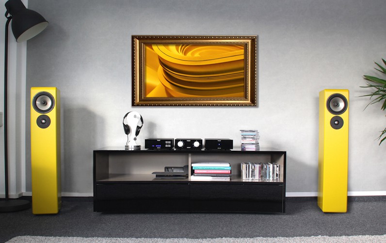 Ja, sie haben es wirklich getan: Senfgelb. In dieser doch eher exotischen Lackierung kommt die 17.2, die wir geordert haben. Gut, das hätten wir auch anders haben können, genau dafür hat Inklang auf seiner Homepage ja den sogenannten „Konfigurator“. Er ist der Kern eines pfiffigen Konzepts, mit dem Inklang beim Boxenbau neue Wege geht: Customizing – die Anpassung eines Serienprodukts an die Bedürfnisse eines Kunden. Am Anfang steht also die Frage: Was brauche und möchte ich? Und hier setzt der Konfigurator an, im ersten Schritt ist er ein Bedarf-Berater, der Traum von einem neuen Schallwandler beginnt nämlich mit der Realität der heimischen Gegebenheiten: Wie groß ist mein Raum? Wo sollen die Boxen stehen: Im Regal, auf dem Sideboard oder frei im Raum? Und welche Leistung liefert mein Verstärker, um die Boxen anzutreiben? Für diese unterschiedlichen Konstellationen bietet Inklang in seiner Lautsprecher-Serie „AdvancedLine“ sieben verschiedene Modellen an, sie reichen von der Regalbox bis zum Standlautsprecher.