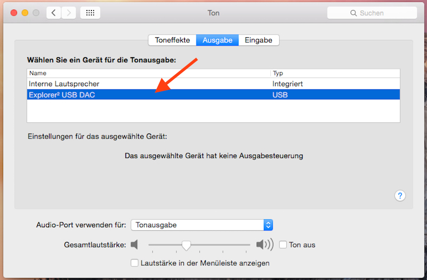 Ist man Besitzer eines Mac-Rechners, muss der „Explorer2 USB DAC“ im Menü als Wiedergabegerät ausgewählt werden. Das war es schon. Schneller und simpler geht es einfach nicht.