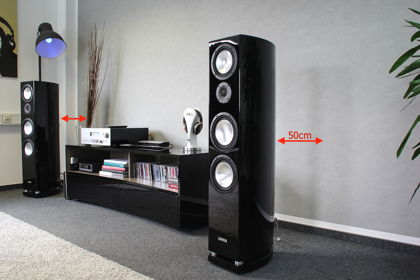 Allgemein gilt: Die Hörposition sollte sich möglichst mittig im Raum befinden, mit möglichst großem Abstand zur Rückwand. Zusammen mit den beiden Hauptlautsprechern sollte der Sitzplatz ein gleichseitiges Dreieck bilden. Das heißt: der Abstand zu den Lautsprechern entspricht der Distanz zwischen den Lautsprechern. Laut gängiger HiFi-Faustregel sollte dieser Abstand bei Standlautsprechern mindestens zwei Meter und nicht mehr als vier Meter betragen, bei Kompakt- und Regallautsprechern entsprechend weniger. Der Abstand der Schallwandler zu Rück- und Seitenwänden sollte dagegen möglichst groß gewählt werden. Eine Box direkt an der Rückwand oder gar in einer Ecke kann ihr Potenzial in der Regel nicht voll ausschöpfen, egal mit was sie gefüttert wird und wie gut der Raum akustisch behandelt wurde. Als Richtwert für den Abstand zur Rückwand gelten ca. 50 Zentimeter. Wird der Abstand größer, profitiert die Tiefenstaffelung im Klangbild teils enorm, während das Bassfundament weniger massiv erscheint. Der Abstand zu den Seitenwänden ist idealerweise eher etwas größer, als der zur Rückwand. In Sachen „Abstand“ hilft viel dann tatsächlich viel! Stehen die Lautsprecher an ihrem Platz, sollten diese zunächst so ausgerichtet werden, dass sie auf den Hörplatz zeigen. Anschliessend drehen Sie die Boxen in kleinen Zentimeterschritten vom Hörplatz weg. Die ideale Winkelung ist erreicht, sobald der Klang nicht mehr von den Lautsprechern zu kommen, sondern im Raum zwischen den Schallwandlern zu schweben schein. Erlaubt ist aber, wie immer, was Ihnen am besten gefällt. Schließlich geht es um den für Sie besten Klang.