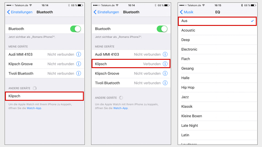 3. „Klipsch“ aus Liste verfügbarer BT-Empfänger auswählen