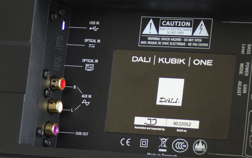 Zugleich zeigt sich mein Testgast mit seinem Gewicht von knapp 10 Kilogramm als sehr stabil. Ein Blick auf die Rückseite verrät dann mehr über die schon beschriebene Vielseitigkeit: Neben dem Stromanschluss befinden sich dort ein Stereo-Analogeingang, zwei optische Digitaleingänge und ein USB-Port. Für die kabellose Signalzuspielung verfügt der Dali zudem über ein Bluetooth-Modul. Modern ist mein Testgast also auch. Diese Vielseitigkeit ermöglicht den Einsatz des Kubik One als klassische HiFi-Anlage und/oder als klangliche TV-Unterstützung. Fürs Auge nicht wahrnehmbar ist der integrierte Vier-Kanal-Stereo-Verstärker, der mit 4 x 25 Watt ordentlich Power an die Ohren bringt. Entnimmt man die Stoffverkleidung, kommen die beiden autark arbeitenden Zwei-Wege-Lautsprechersysteme zum Vorschein. Bedeutet: der Kubik One ist wie ein besseres Pärchen Regallautsprecher bestückt. Bei genauerem Hinsehen fallen dann die durch Holzfasern verstärkten Papiermembranen auf, die ich schon aus den hochwertigen Lautsprecher-Linien der Dänen kenne. Dali meint es klanglich also auch mit diesem multimedialen Alleskönner ziemlich ernst. Nach dem ersten Check stelle ich somit zufrieden fest: Die Optik stimmt, Verarbeitung und Materialwahl machen einen überzeugenden Eindruck und auch die technischen Voraussetzungen versprechen Spaß. Smartphone und TV warten schon – also kann es losgehen mit dem Soundcheck!