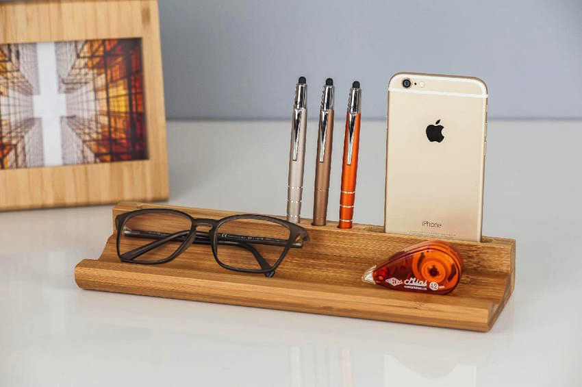 22. August 2016Der Herbst steht vor der Tür. Schreibtischzubehör aus Bambus in sanften Honigtönen macht erste Indoor-Abende zu Hause jetzt noch schöner. Wohn-Accessoires aus dem asiatischen Naturmaterial liegen im Trend und halten im gesamten Interieur-Bereich in Form von Möbeln, Küchenutensilien und Wohnzubehör Einzug. Die Werner Dorsch GmbH aus Dieburg setzt bereits seit einigen Jahren zur Herstellung von Bilderrahmen, Klebefilm-Abroller und Co. auf den nachwachsenden Rohstoff. Ganz neu erweitert der Bambus Tisch-Organizer mit Smartphone-Halter die Schreibtisch-Serie. Er präsentiert sich im zeitlosen Design als nachhaltige Alternative zu Ablageschalen aus Plastik.