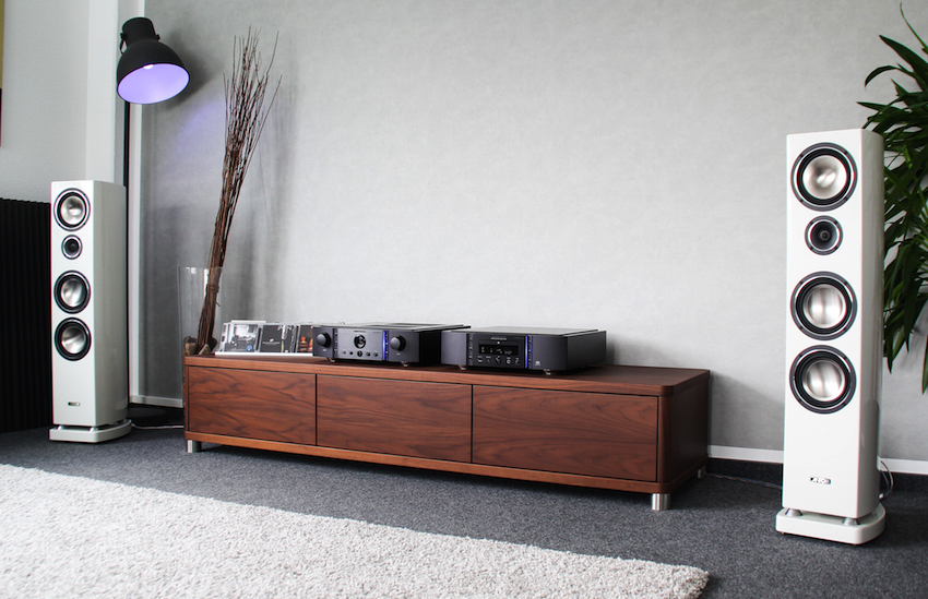 Bei einem HiFi-Setup massiver Bauweise lässt man sich schnell dazu verleiten, zuerst auf das Bassfundament zu achten. Das ist bei der zwar eher wohnraumtauglich designeten, dabei aber massiv aufgebauten Marantz-Kombi nicht anders. Dennoch: Bass ist zwar reichlich vorhanden, dieser sticht allerdings keineswegs aus dem musikalischen Ganzen heraus, wie ich im Grace-Jones-Titel „Pull Up The Pumper“ von CD schnell feststelle. Das ist gut so, denn so kraftvoll wie Basswiedergabe ist, so sehr kann sie auch nerven, wenn sie sich dauerhaft in den Vordergrund spielt. Wie gesagt; das alles ist hier nicht der Fall. Im Gegenteil, denn statt durch überzogene Basseinlagen auf sich aufmerksam zu machen, liefert mir das Marantz-Duo von der ersten Sekunde an ein absolut ausgeglichenes Klangbild. „Ausgewogen, strukturiert und mit erstaunlichem Druck“ wäre wohl die korrekte Beschreibung dessen, was ich nun zu hören bekomme. Das alles, obwohl ich meinen Testgästen nicht einmal die ansonsten übliche Einspielzeit gönnte. Sehr gut, eine jetzt schon imponierende Performance, die zu diesem Zeitpunkt in dieser Form sicher nicht zu erwarten war. Auch wenn ich jetzt gern weitergemacht hätte, gilt es zunächst identische Grundlagen zu schaffen. Wie jedem anderen Testprobanden gönne ich dem tiefschwarzen Audio-Setup deshalb zunächst die obligatorische zweitägige Einspielzeit, bevor ich meinen HiFi-Test fortsetze. Selbstverständlich beginnend mit eingangs erwähntem Song. Tonal noch immer perfekt abgestimmt, mutet der Track nun allerdings eine Spur luftiger und freier an. Was ebenfalls sofort auffällt: das gesamte Klangbild überrascht jetzt durch noch mehr Feinzeichnung und eine Detailwiedergabe, die man sich kaum besser wünschen könnte. Obendrein scheint auch die räumliche Abbildung von besagter Einspielzeit zu profitieren, denn jetzt spannt mein Testset einen sauber umrissene Bühne auf, auf der Keyboard, Drums und Gitarre sauber gestaffelt und dennoch als zusammengehöriges Ganzes dargestellt werden. Und zwar ohne eines der Instrumente oder die Vocals der jamaikanischen Künstlerin zu sehr in den Vordergrund zu stellen oder die Bühne als zu groß erscheinen zu lassen. Nein, hier scheint alles zu stimmen; Raum, Instrumentalisierung, Stimme – alles präsent und dennoch homogen dargestellt. Eine sehr gute Basis, um auch mehrstündige Musiksessions mit viel Freude durchzustehen, was beileibe nicht mit jeder Stereo-Anlage der Fall ist.