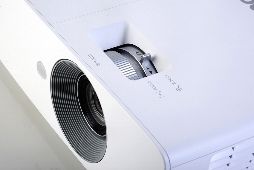 „Klar, Heimkino geht auch“, antwortete ich gelassen. Der BenQ TH683 besitzt ein großzügig bemessenes Zoom-Objektiv, mit dem ein drei Meter breites Bild aus einer Entfernung von 3,45 – 4,5 Meter projiziert werden kann, ohne dass der Projektor verschoben werden muss. Flexibel ist er also auch. Dank des Off-Sets kann der TH683 auf Höhe der Leinwandunterkante oder -Oberkante (Überkopf) betrieben werden. Einen leicht schrägen Projektionswinkel gleicht die „Keystone“-Technik automatisch aus. Sehr gut!