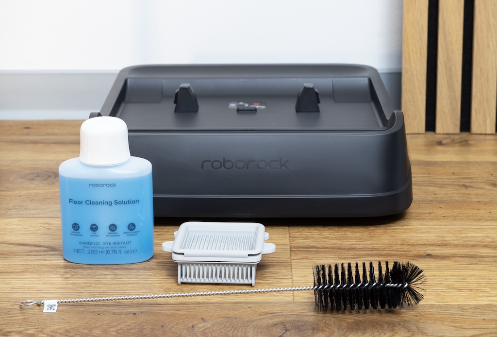 Das Wischen von Böden ist nicht gerade die beliebteste Tätigkeit beim Saubermachen. Mops und Bodenwischer erfordern ständiges Bücken und Kontakt mit dreckigem Wasser. Dazu können empfindliche Böden durch zu viel Flüssigkeit schnell Schaden nehmen und wer Fußspuren verhindern will, bleibt danach am besten zwanzig Minuten in der Ecke stehen. Diese Probleme soll es beim Roborock F25 Ultra nicht geben. Der Nass-Trocken-Sauger ist für die Reinigung von Hartböden verschiedenster Art konzipiert. Er mischt automatisch Frischwasser und Reinigungslösung, passt während dem Betrieb die Wassermenge und die Absaugung eigenständig an und nach dem Putzen reinigt und trocknet er sich auch noch selbst. Im Lieferumfang des F25 findet man zunächst das Gerät selbst, bei dem Frisch- und Schmutzwassertank bereits installiert sind. Die sehr weiche Bürstenrolle hingegen findet man separat verpackt im Karton, ebenso wie den Griff, der die Bedientasten beherbergt, eine 200-Milliliter-Flasche Reinigungsmittel, eine kleine Bürste, die Anleitung und einen Ersatz-Luftfilter.