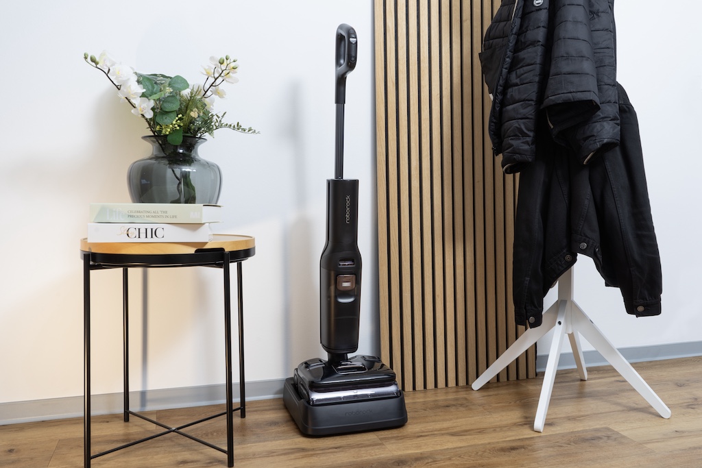 Der Zusammenbau des F25 selbst ist schnell erledigt. Zunächst schiebt man die Bürstenrolle unten in den Reinigungskopf und verriegelt sie. Auf der Oberseite wird dann nur noch der Handgriff in das Gerät gesteckt. Ergänzend zum F25 Ultra muss dann noch der Ladedock mit dem beiliegenden Stromkabel und einer Steckdose verbunden werden. Der Dock dient, neben dem Aufladen des internen Akkus des Nass-Trocken-Saugers, auch als genereller Aufbewahrungsort für den F25. Ist er dort platziert, kann hier auch die Selbstreinigung des Gerätes vollzogen werden. Mit wenigen Handgriffen ist also alles bereit gemacht. Wer möchte kann dann noch die Robrorock-App installieren, um Zugriff auf weitere Funktionen des Gerätes zu bekommen. Nach dem installieren scannt man einen QR-Code hinter dem Schmutzwassertank des Saugers, woraufhin die Kopplung mit dem Mobilgerät und dem heimischen WLAN beginnt. Auch das ist schnell erledigt. Nun lassen unter anderem Statusmeldungen einsehen, Einstellungen ändern und die Reinigungsmodi optimieren.