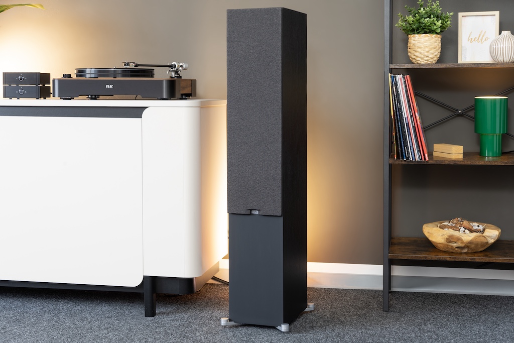 Elac legt den Lautsprechern magnetische Frontabdeckungen bei, die den geradlinigen Look nochmals unterstreichen.