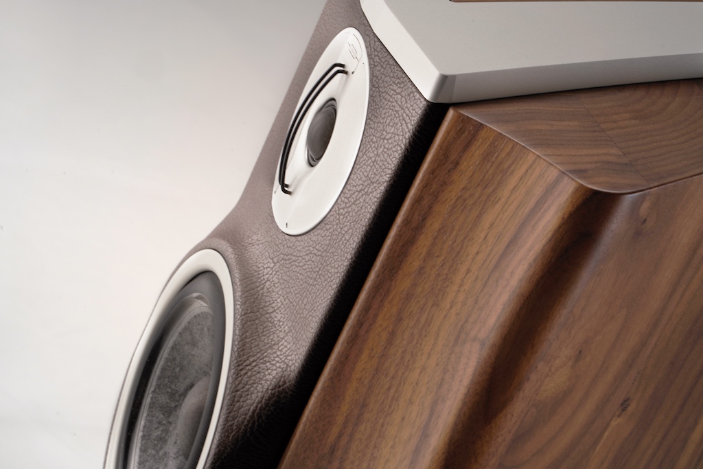 Die Frontplatte ist mit Leder bezogen und leicht geneigt, sodass Hoch- und Mitteltöner zeitlich phasenrichtig abstrahlen. Dadurch entsteht eine plastische, tief gestaffelte Bühne, die sich vollständig vom Lautsprecher löst und den Hörer mitten ins musikalische Geschehen versetzt.