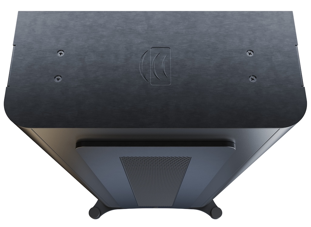 Der D8is arbeitet mit einem außergewöhnlichen Prinzip: Acht 8.5-Zoll-Treiber (215 mm) sind in einem Push-Pull-Array angeordnet. Akustisch spielen sie in Phase, mechanisch bewegen sie sich gegeneinander. Dadurch heben sich die entstehenden Kräfte weitgehend auf. Das sogenannte Force Cancelling. Selbst bei hohen Pegeln bleibt das über einen Meter hohe Aluminiumgehäuse nahezu frei von spürbaren Vibrationen. Angetrieben wird das System vom externen DSP3000A-Verstärker (im Lieferumfang: ein 3-kW-Modul im Hybridgehäuse aus Stahl und Aluminium, mit einem präzisen DSP, und einem 2,8-Zoll-Farbdisplay an der Front. Für Installationen stehen Montagewinkel für Racks bereit; für Wohnzimmer-Setups lässt sich der Verstärker sichtbar präsentieren oder im Technikschrank verbauen.