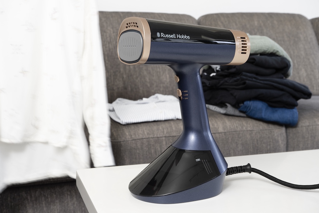 Bügeln wird immer unbeliebter und das hat seinen Grund. Zunächst einmal sind heutige Textilien schlicht nicht mehr so sehr darauf angewiesen. Wer heute in den Kragen eines Hemdes schaut findet dort fast immer die Worte „Easy Iron“, die zeigen, dass der Stoff weniger knitteranfällig ist. Zweiter Grund ist der Platzbedarf. Mit dem Bügeleisen selbst ist es schließlich nicht getan, denn auch ein Bügelbrett muss irgendwo in der Wohnung unterkommen, bei Bedarf herausgeholt und irgendwo aufgestellt werden. Und letztlich ist Bügeln schlicht Zeitaufwändig und energietechnisch ineffektiv. Mit Hervorkramen der Utensilien, Aufbau, langem Aufheizen, ständigem Umlegen der Wäschestücke auf dem Brett und dem anschließenden Abbau, vergeht nicht wenig Zeit. Und gerade wer nur eben schnell ein einzelnes Kleidungsstück von Falten befreien will, verzichtet dann doch eher auf den Aufwand. All diese Probleme will Hausgerätespezialist Russell Hobbs mit seinem neuen Steam Genie VacuSteam nun aber aus der Welt geschaffen haben.