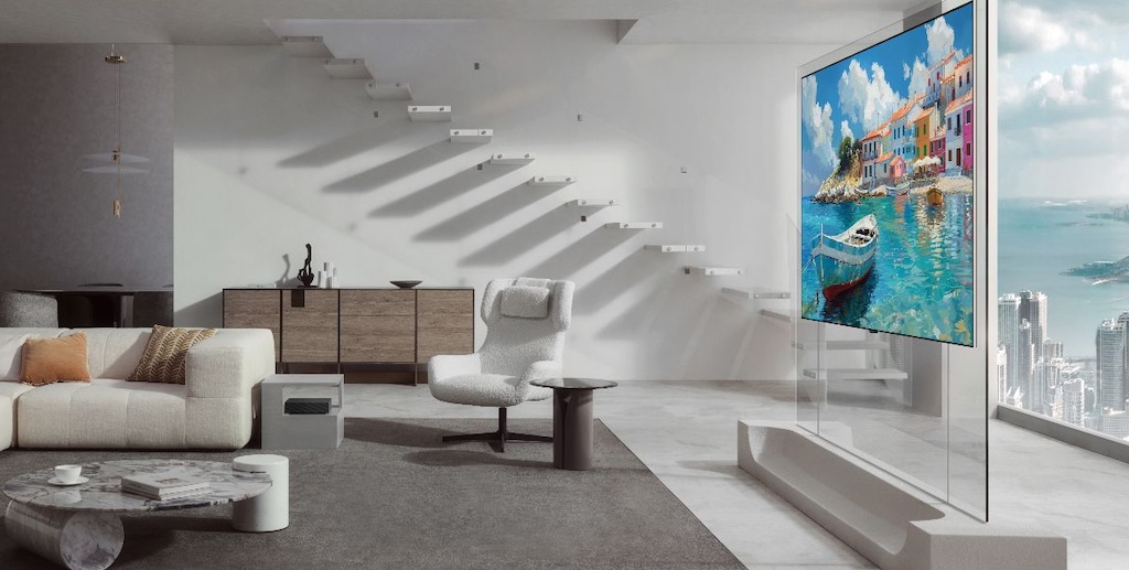 Das Spitzenmodell LG OLED evo W6 fügt sich nahezu unsichtbar in den Raum ein