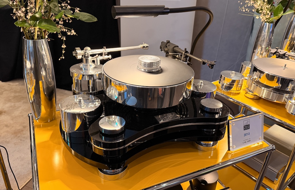 Transrotor zeigte wieder einmal einige seiner Top-Modelle – hier den mächtigen Zet 3.