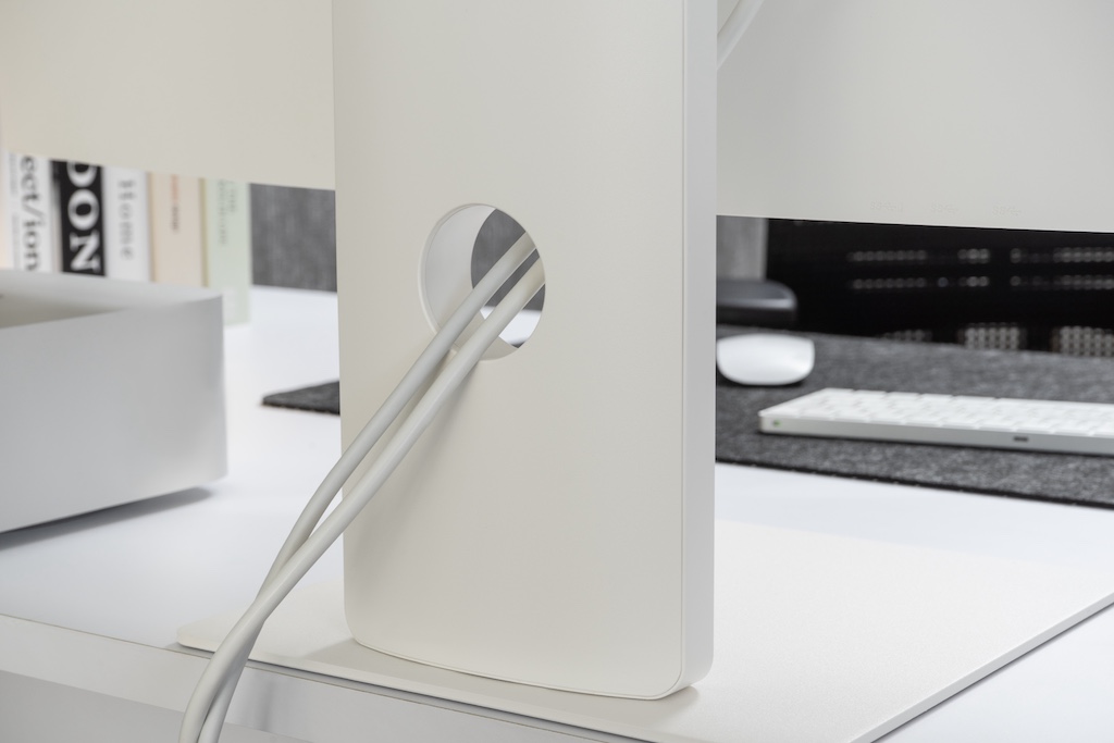 Die gorßzügig ausgelegte Kabeldurchführung sorgt auch bei vielen angeschlossenen Geräten für Ordnug auf dem Schreibtisch.